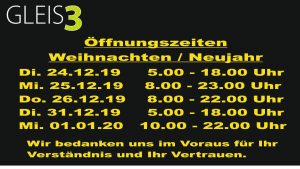 Öffnungszeiten Weihnachten / Neujahr